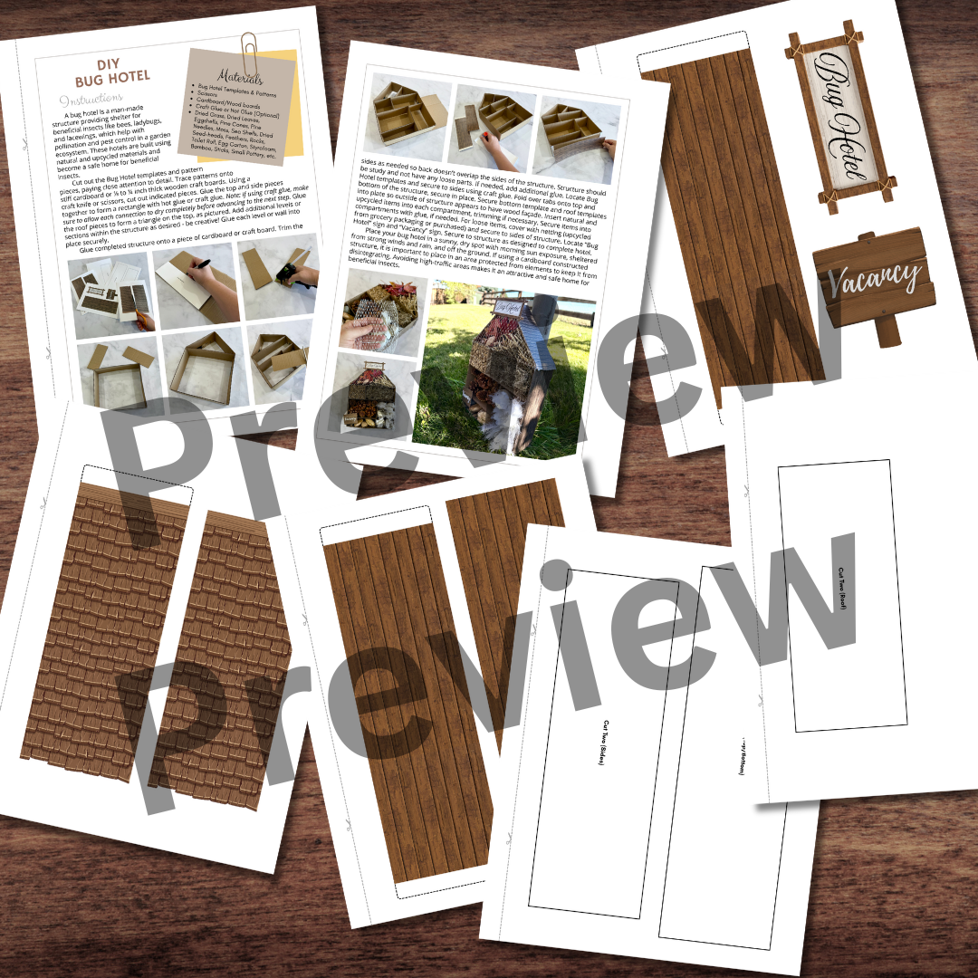 Create your own "Bug Hotel" with patterns, step-by-step instructions and full color decals as a hand's-on activity that provides essential nesting sites and shelter for native pollinators and other beneficial insects, increasing local biodiversity and supporting ecosystem health.