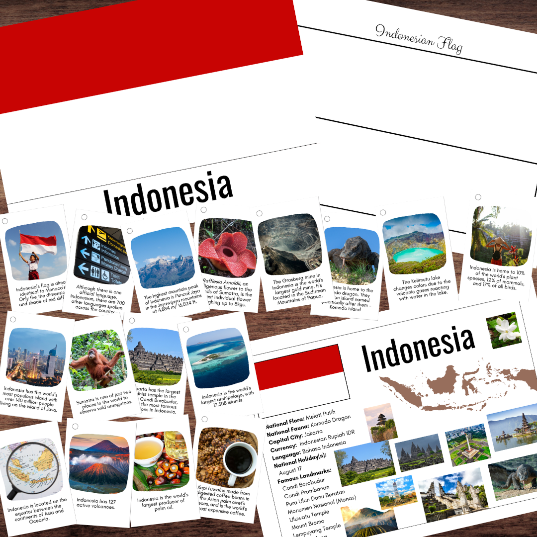 Read about Bawang Merah Bawang Putih in a illustrated mini-book and create a working Congkak game out of egg cartons. Practice the pronunciation of basic Indonesian words with full color flashcards. Discover the cultural practices and traditions that make this country so unique! And MUCH more!