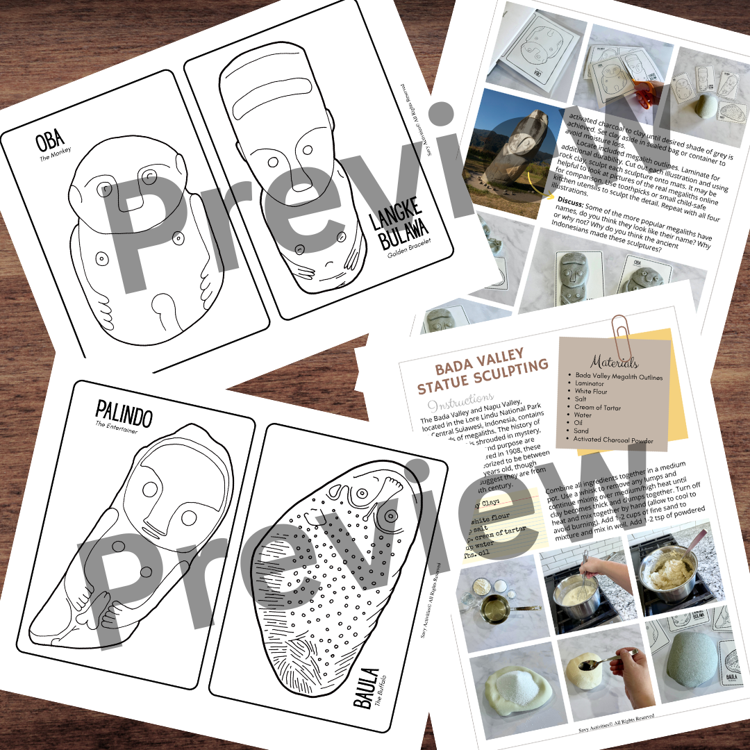 Indonesia BADA VALLEY STATUES Megalith Sculpture Mats w/"Rock" Clay (Recipe Included)