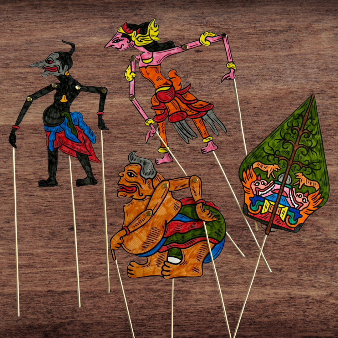 Create four child-friendly interactive puppets based on real Wayang kulit figures as well as a functional shadow theater including step-by-step instructions.