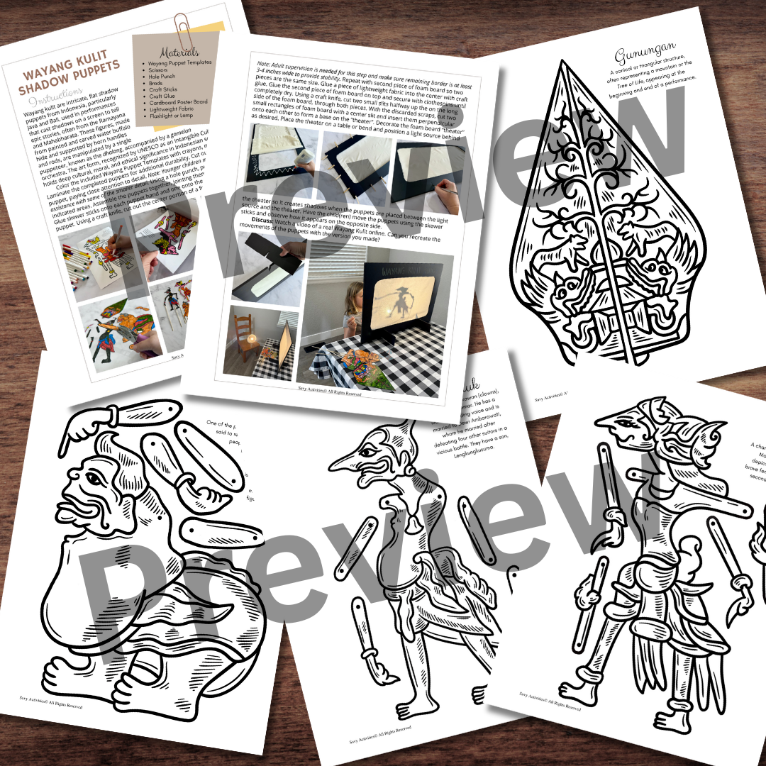 Indonesian WEYANG KULIT Shadow Puppets Craft Activity | 4 Puppet Designs + Theater