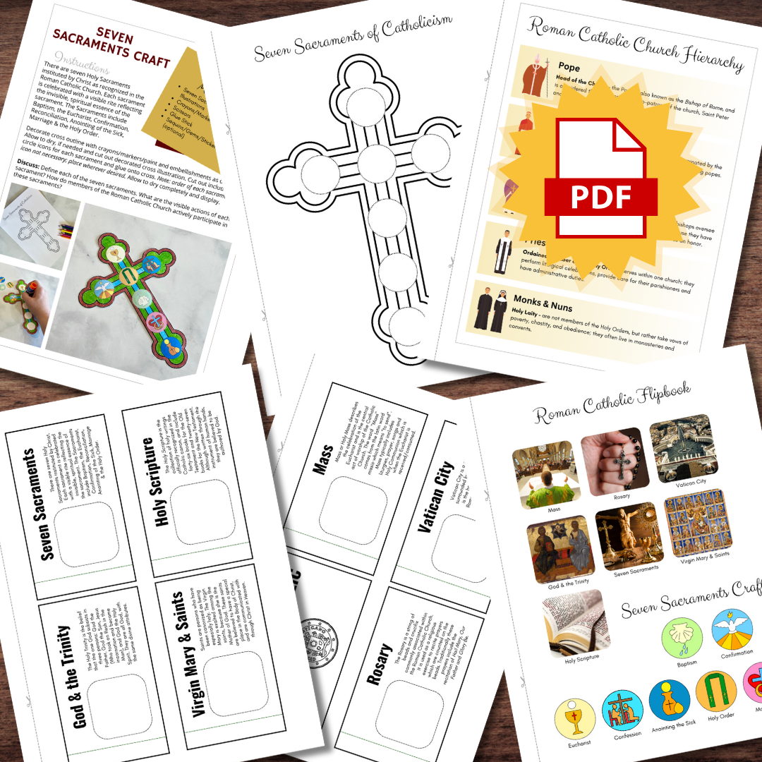 Roman Catholic Seven Sacraments Craft, Mini-Book & Holy Order Hierarchy Poster